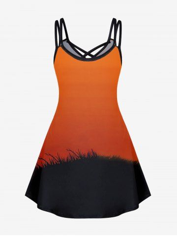Vestido Talla Extra Cruzado Estampado Gato - Naranja Oscuro - S | Us 8