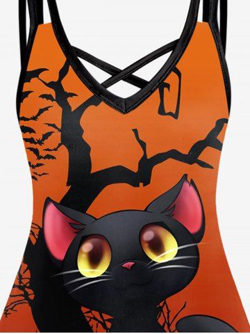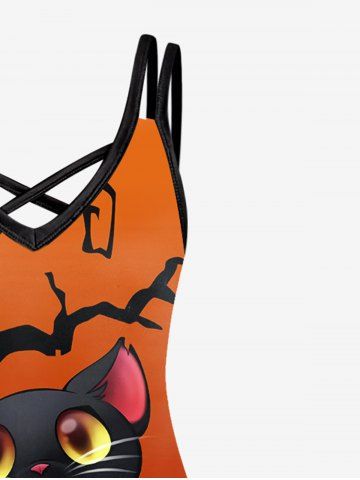 Halloween Dresses > Vestido Talla Extra Cruzado Estampado Gato