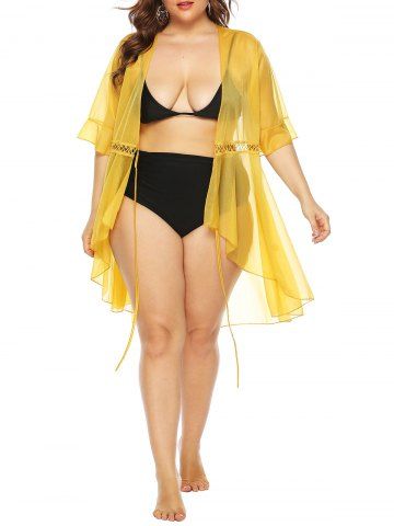 Cover Up de Playa con Nudo en Talla Extra - Amarillo - Amarillo