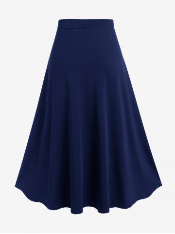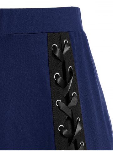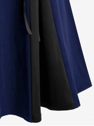 Halloween Vampire Costume Gothic Lace Up Two Tone Godet Hem Midi A Line Victorian Walking Skirt - Azul - Azul