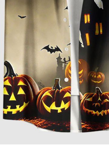 Hombre > Plus Size Halloween Pumpkin Bat Moon Ombre Castle Print Buttons Pocket Shirt For Men