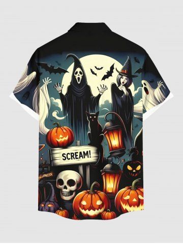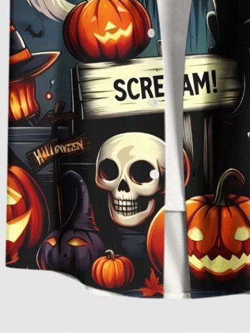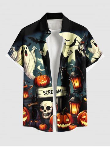 Hombre > Plus Size Pumpkin Lantern Skull Wizard Ghost Bat Moon Print Halloween Button Pocket Shirt For Men
