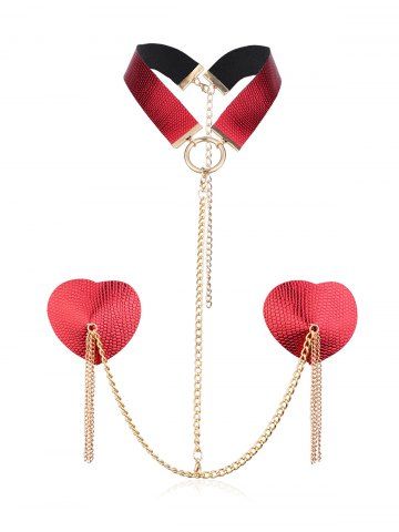 Chain Linked Nipple Cover With Choker - Rojo - Rojo