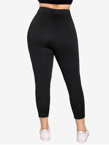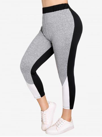 Leggings de Gimnasio de Cintura Alta con Bloqueo de Color - Negro - Negro