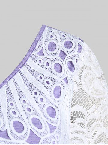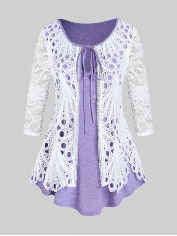Camiseta 2 en 1 de Talla Grande con Panel de Encaje de Ojo de Cerradura - Purpúreo Claro - Luz Púrpura