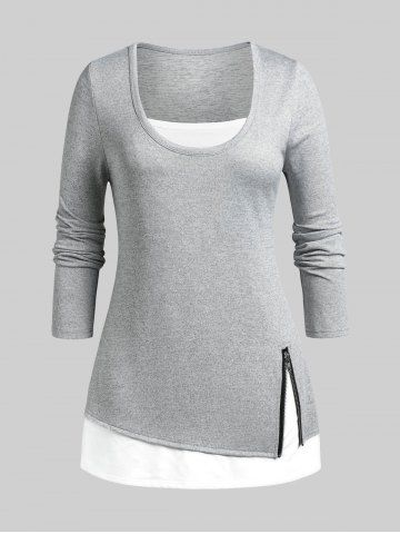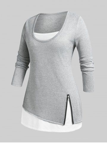 B*****b5Plus Size Zippered 2 in 1 TeeColor: GRAY Size: 3XGreat value...would definitely recommend! The fabric is so soft and comfortable...Perfect fit and shipped fast! Beautiful, exactly as pictured. Amazing quality! fits exactly by size! Great top!!!