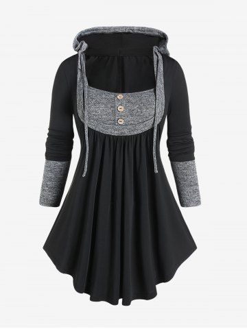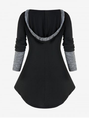 Camiseta Capucha Cordón Ajustable Color Tamaño Plus - Negro - Negro