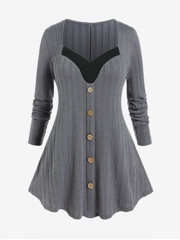 Camiseta con Botones de Color de Contraste - Gris Oscuro - Gris Oscuro