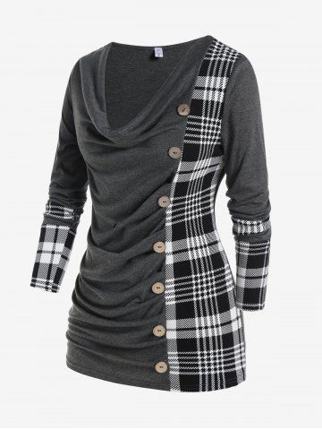 M*****a5Plus Size Plaid Cinched Ruched Ripped Long Sleeves TeeColor: BLACK Size: 1X | US 14-16I like that it is lightweight and comfortable. I also like the cut in the front sexy but not reveling.