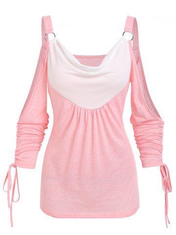 Camiseta de contraste muñeco de la junta tórica del hombro frío - Rosa Claro - Rosa Luz