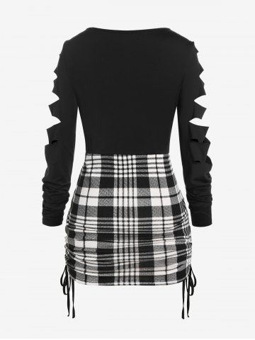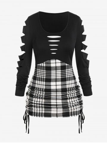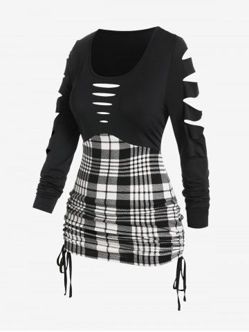 l*****a5Plaid Cinched Ruched Ripped Long Sleeves Tee and Plaid 3D Ripped Print Skinny Leggings Plus Size OutfitColor: BLACKLove this outfit ! Beautiful perfect fit!