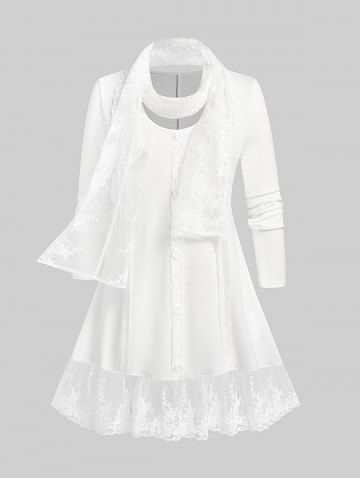 C*****e5Plus Size Embroidered Mesh Panel Longline T-shirt with ScarfColor: WHITE Size: LI absolutely love this top! it fits perfectly and is so soft. Rosegal is the best! the lace scarf is not attached so you can wear it anyway you want. you need to get this top!!!