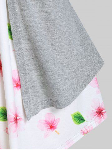 Plus Size Faux Twinset O Ring Floral Print Tee