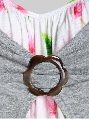 Plus Size O Ring Floral Print Faux Twinset Tee