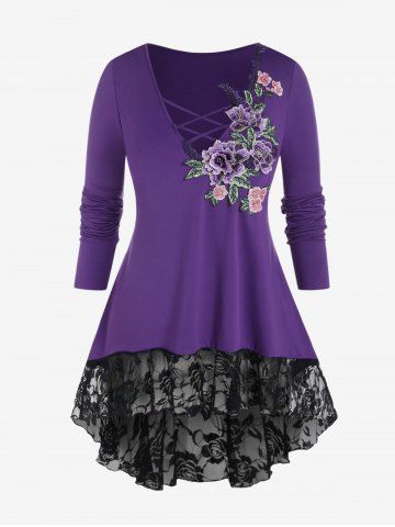 D*****e5Plus Size Plunge Applique Crisscross Lace Hemline High Low TeeColor: PURPLE Size: M | US 10I just want to start off, by saying that I love rose gal, and all their clothing. I only buy my clothes from RoseGal. I’ve ordered from Rosegal quite a few times so I know what to expect when I order a garment or outfit from them. nnThis is a beautiful garment and looks just like the picture. It fits me perfectly. This garment has beautiful colors throughout that blend well together. nnThe fabric is so soft and comfortable. You could sleep in it if you had to. If I had a complaint, it would be that on a few shirts, the straps are a little big, but I can just pull them back and talk them together, no biggie. if I had a complaint, it would be that on a few shirts, the straps are a little big, but I can just pull them back and tack them together, no biggie. Great the value would definitely recommend it. It is great value would definitely recommend it.