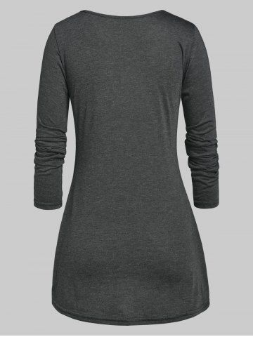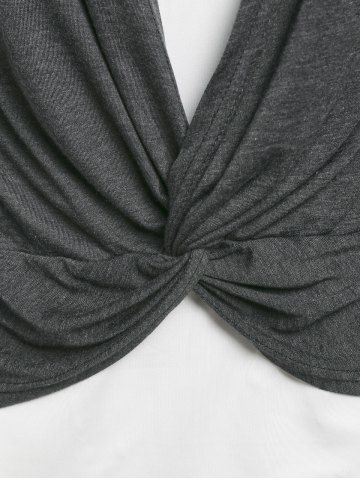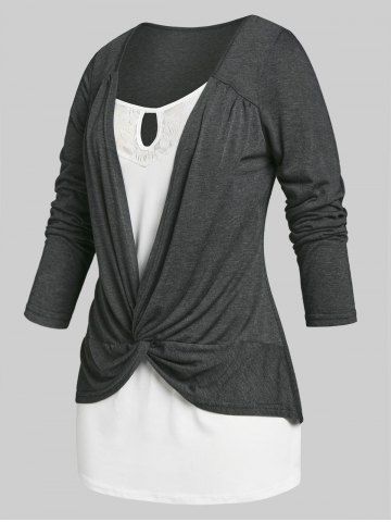B*****b5Plus Size Faux Twinset Front Twist TeeColor: GRAY Size: 3XThis is a great top! Shipped fast and packaged nicely, soft and comfy material, designed well and fits perfectly!