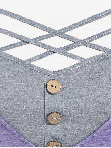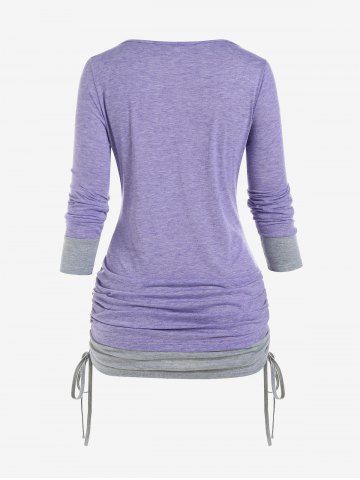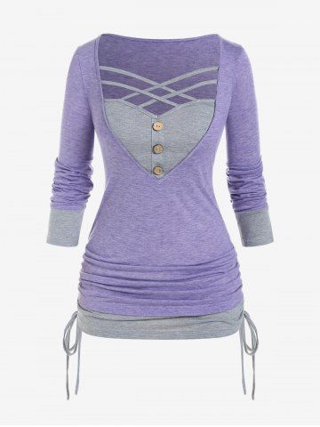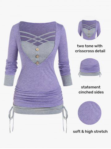 Plus Size Colorblock Crisscross Cinched 2 in 1 Tee