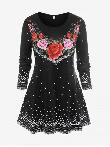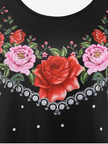 j*****e5Plus Size Round Neck Floral Pattern Valentines T ShirtColor: BLACK Size: 5XTrue to size. the pattern is very pretty. It is very comfortable. I wish the pattern would continue on the back as well.