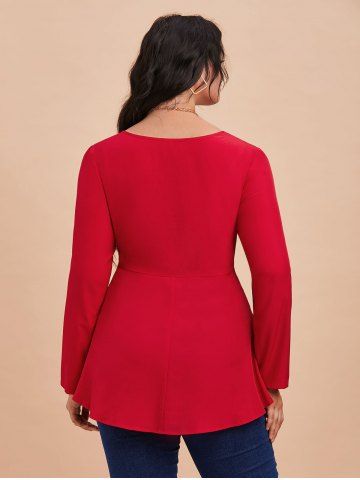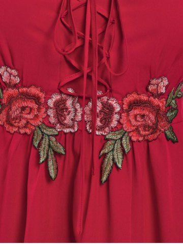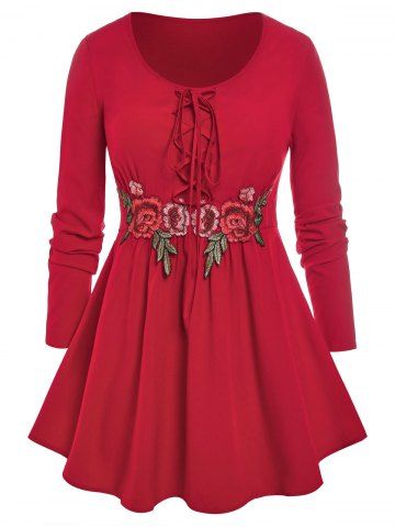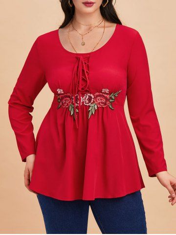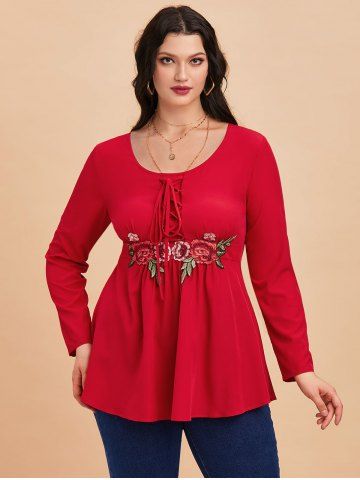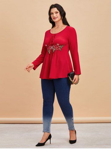 Camiseta Talla Extra Floral Aplique Encaje - Rojo - Rojo