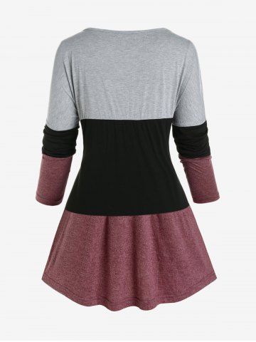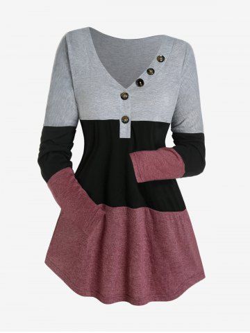 Plus Size Colorblock Long Sleeves Tee with Buttons