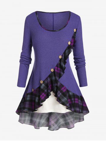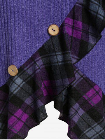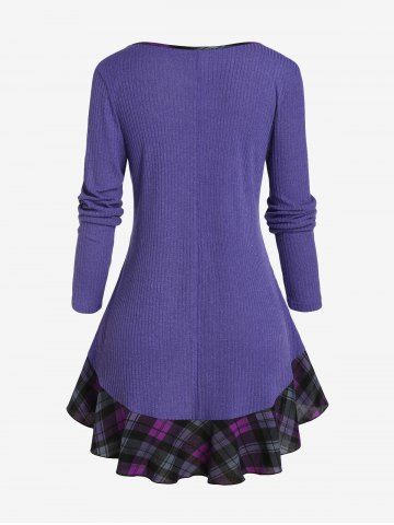 L*****z5Plus Size Cable Knit Panel Plaid Mixed Media Asymmetric TopColor: CONCORD Size: 2X | US 18-20I adore this top, nice and warm! the top is as promised in color, beautiful deep dark purple, very flattering garment. makes me feel delicate and feminine, even though I'm on the plumper side. Front knitted edge runs a little long, making it feel almost like a dress, which I enjoy.