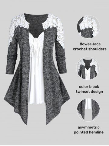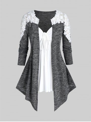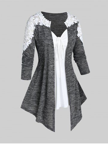 Plus Size Lace See Thru Dolman Sleeve Tunic T-shirt