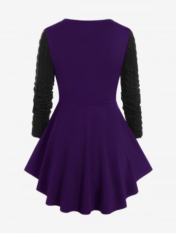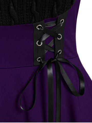 Plus Size Cable Knit Panel Mixed Media Lace Up Tee - Púrpura - Púrpura