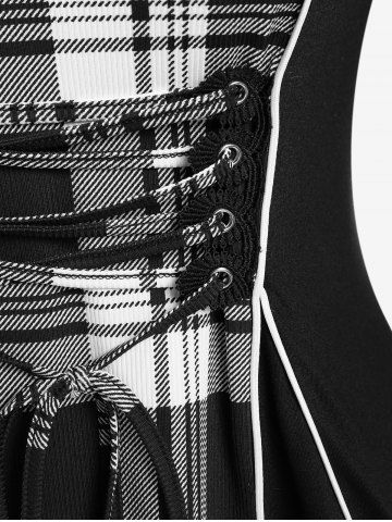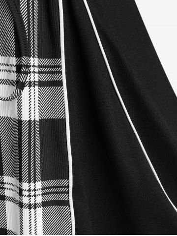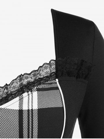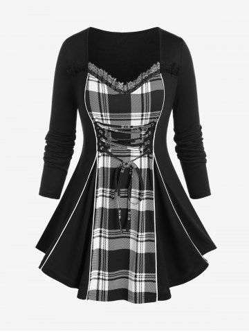 s*****i5Checked Lace-up Lace-trim Long Sleeve Top and Plaid Colorblock Leggings Plus Size OutfitColor: BLACKtrès mignon et agréable à porter nLe petit hic! Le haut et le bas ne corresponde pas.. ni matière ni couleur ..nMais j'adore