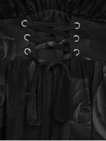 a*****a5Plus Size Flare Sleeves Rose Flower Printed Lace Up Chiffon Layered Ruched Bust Valentines TopColor: DEEP RED Size: L | US 12I LOVE this top! The sleeves make it a nice cool shirt to wear during warmer weather, and the cinched waist is so flattering. It can be easily adjusted with the ties and the fit at the top shows off the figure. Add a choker to it and you're a 90s queen! Runs just a LITTLE big!