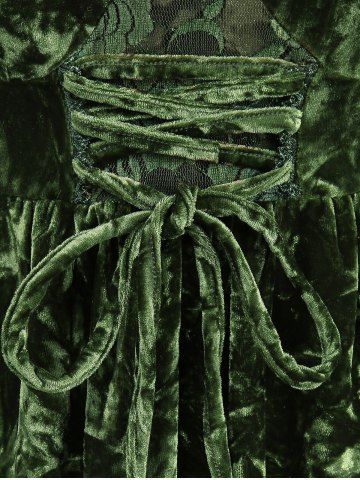 Plus Size Lace Trim Bell Sleeves Lace-up Velvet T-shirt - Verde Oscuro - 1x | Us 14-16