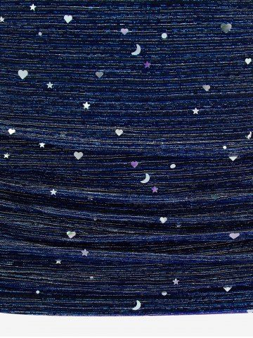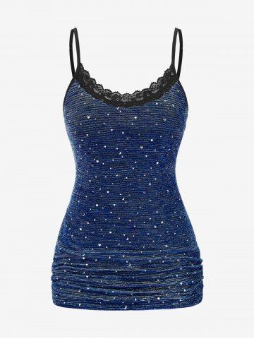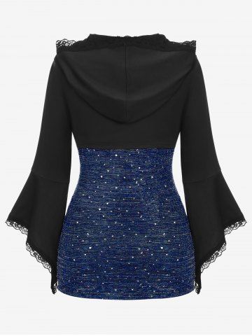 Plus Size Lace Trim Chains Textured Ruched Bell Sleeves Hooded T-shirt - Azul Profundo - 3x | Us 22-24