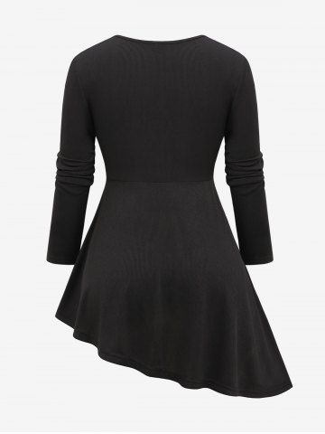 m*****84Plus Size Zebra Striped O-Ring Butterfly Buckle Asymmetric Long Sleeves T-shirtColor: BLACK Size: 1X | US 14-16true to size, great fabric and nice fit. I can't wait to wear it to work or going out