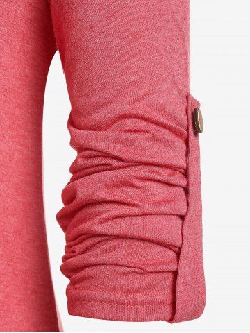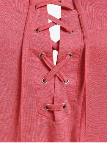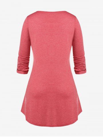 Talla grande enrollar el encaje de la manga de la camiseta - Rojo - Rojo
