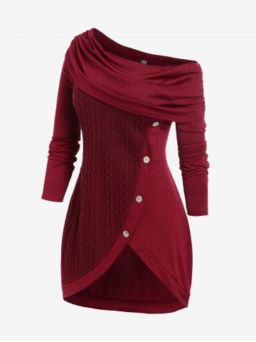 m*****e5Plus Size Convertible Neck Cable Knit Panel Slit TopColor: RED Size: 4X | US 26-28love the color and fabric and style