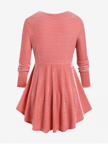 c*****25Plus Size Velvet Twist Front Swing TopColor: LIGHT PINK Size: 1X | US 14-16The fit and color are awesome. The material looks and feels amazing.