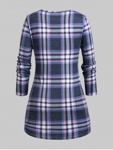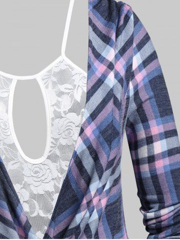 B*****b5Plus Size Plaid Front Twist Keyhole 2 in 1 TopColor: PURPLE Size: 3XBeautiful top. Material is soft and comfortable, perfect fit, shipped fast and packaged nicely! Another beautiful winner! Lace top is attatched on the inside. Great quality and design!