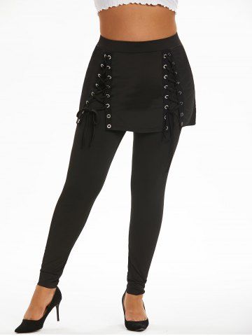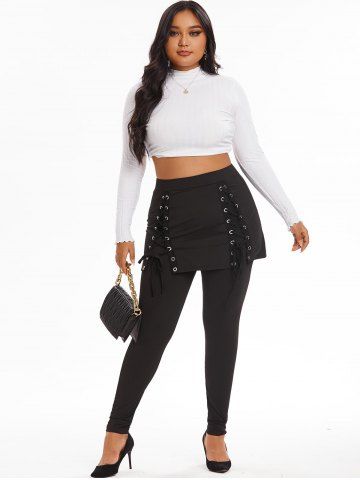 Colorblock Crisscross Faux Twinset Tee and Lace Up Skirted Pants Plus Size Outfits