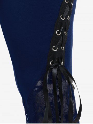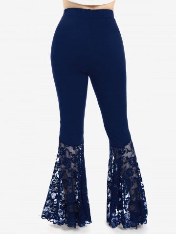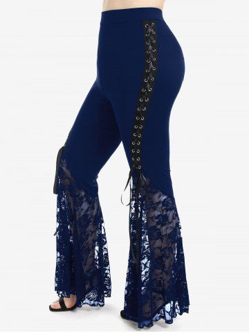 Plus Size Lace Panel Pull On Flare Pants with Lace-up - Azul Profundo - 2x | Us 18-20