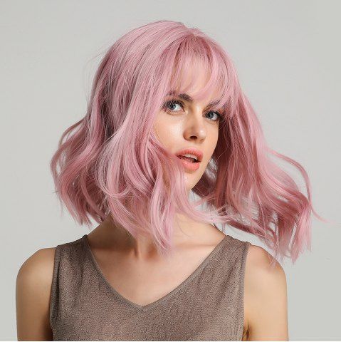 Pelucas Sintéticas > Short Pink Wavy Synthetic Wig with Bang Purple Wave Wig Cosplay Wig 6-LY210