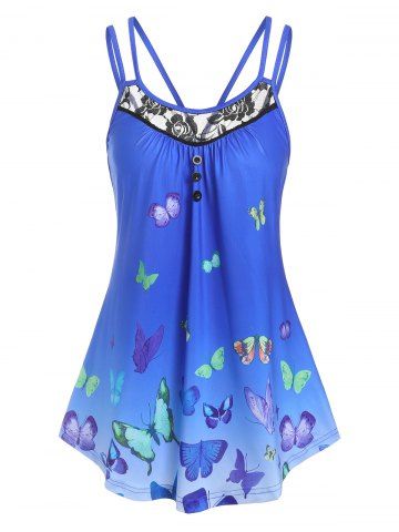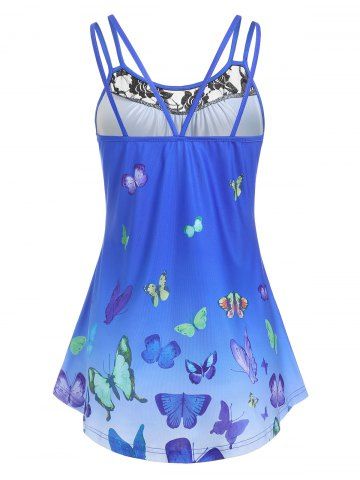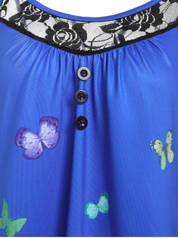 Top Sin Mangas Panel Encaje Estampado - Azul - Azul
