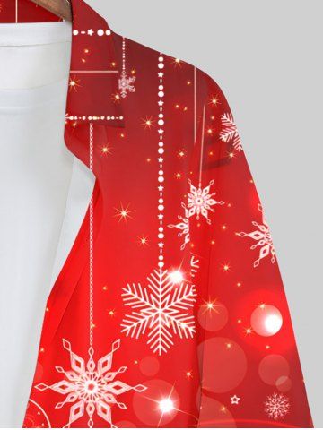 Plus Size Christmas Ball Snowflake Tassel Colorblock Glitter 3D Print Buttons Pocket Long Sleeve Shirt For Men - Rojo - Rojo