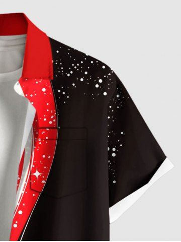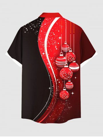 Plus Size Christmas Ball Tassel Star Colorblock Print Buttons Pocket Shirt For Men - Rojo - Rojo
