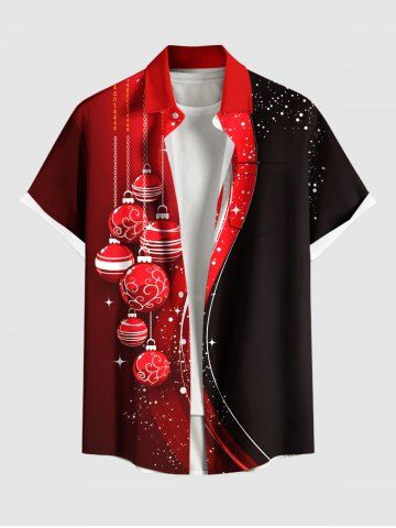 Plus Size Christmas Ball Tassel Star Colorblock Print Buttons Pocket Shirt For Men - Rojo - Rojo