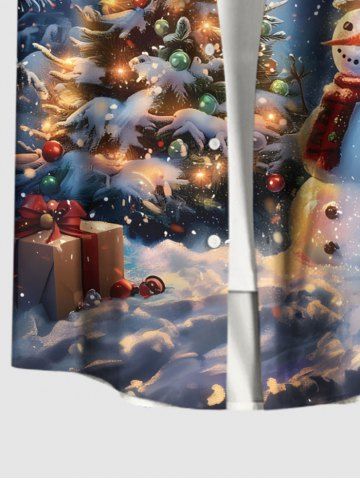 Plus Size Christmas Tree Snowman Snowflake Light Bell Print Buttons Pocket Shirt For Men - Celeste - Cielo Azul