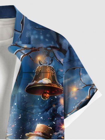 Plus Size Christmas Tree Snowman Snowflake Light Bell Print Buttons Pocket Shirt For Men - Celeste - Cielo Azul