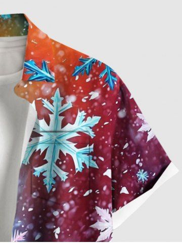 Ropa de hombre > Plus Size Ombre Christmas Snowflake Print Button Pocket Shirt For Men