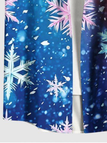Plus Size Ombre Christmas Snowflake Print Button Pocket Shirt For Men - Celeste - Cielo Azul