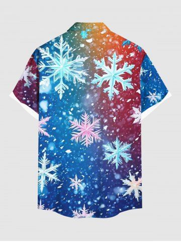 Plus Size Ombre Christmas Snowflake Print Button Pocket Shirt For Men - Celeste - Cielo Azul