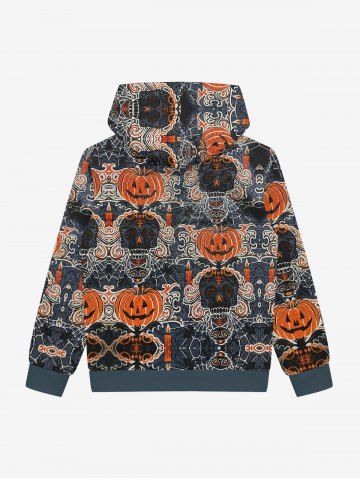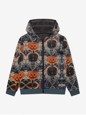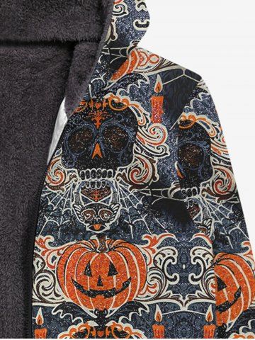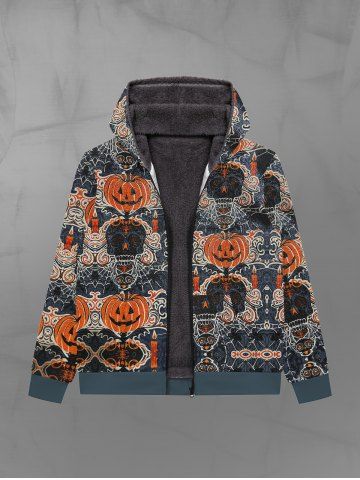 Gothic Halloween Skull Pumpkin Cat Print Zipper Fleece Hoodie For Men - Multicolor-a - 3xl