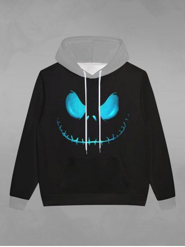 Gothic Halloween Smile Print Fleece Lining Hoodie For Men - Negro - Negro
